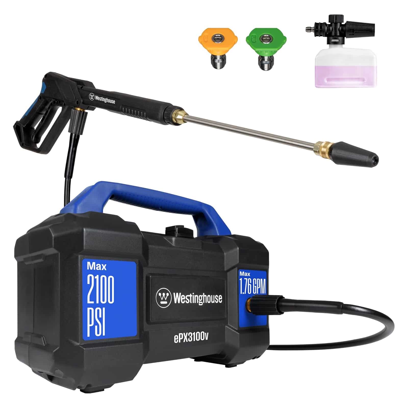 The Westinghouse Battery Powered Pressure Washer boasts an impressive 2100 Max PSI, making it one of the most powerful cordless options available. The pro-style steel extendable wand provides excellent reach and control, particularly useful for cleaning elevated surfaces or hard-to-reach areas.