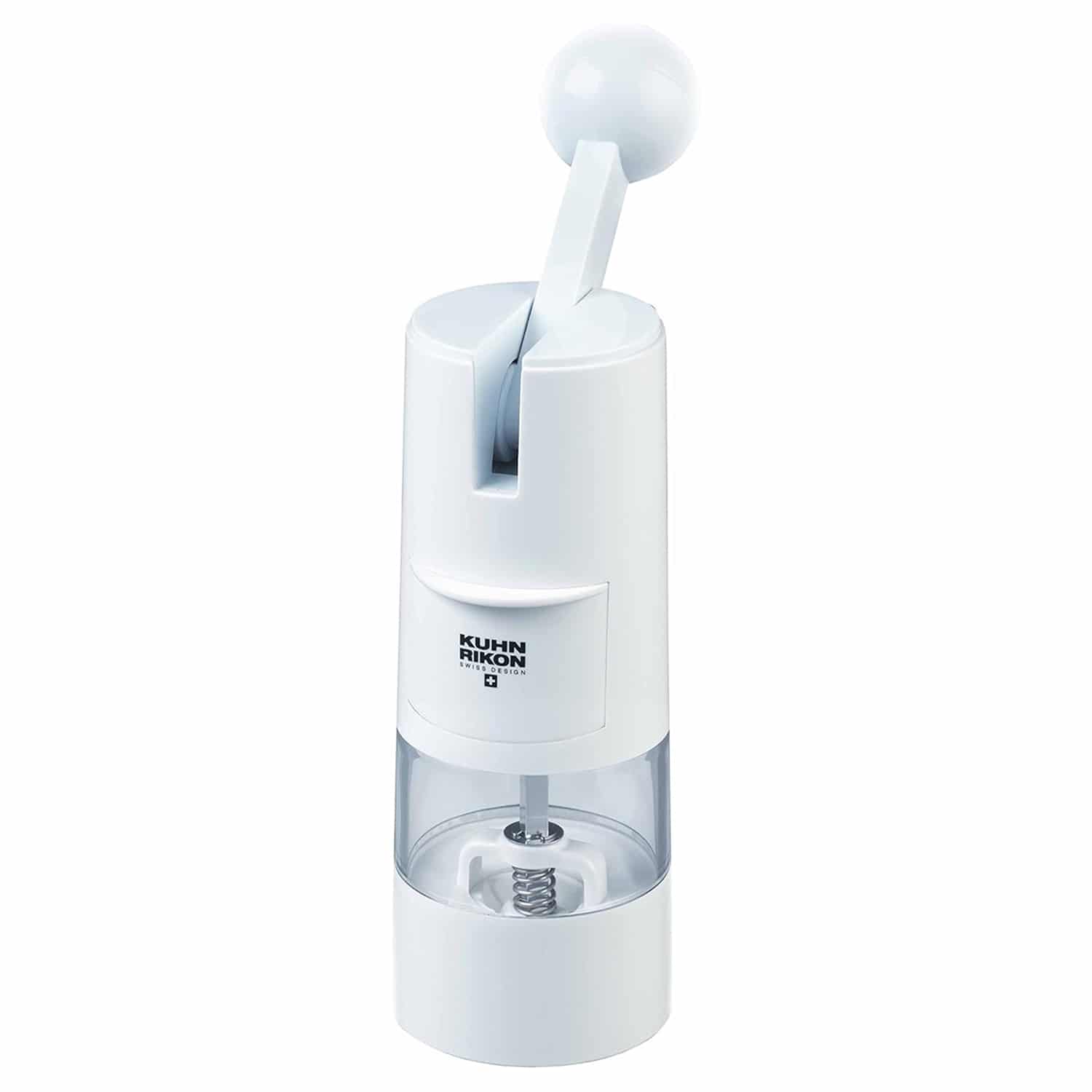 The Kuhn Rikon Ratchet Grinder introduces an innovative manual operation system that eliminates wrist strain associated with traditional twist grinders. The ratchet mechanism provides efficient grinding with minimal physical effort.
